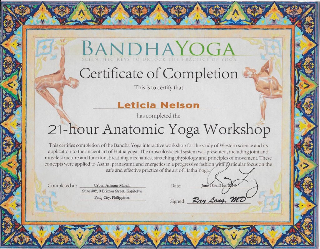 - RYT200. Completed 200-HR YogaWorks TT with David Lynch. Urban Ashram School of Yoga, Manila (Pasig), Philippines, October 2014.